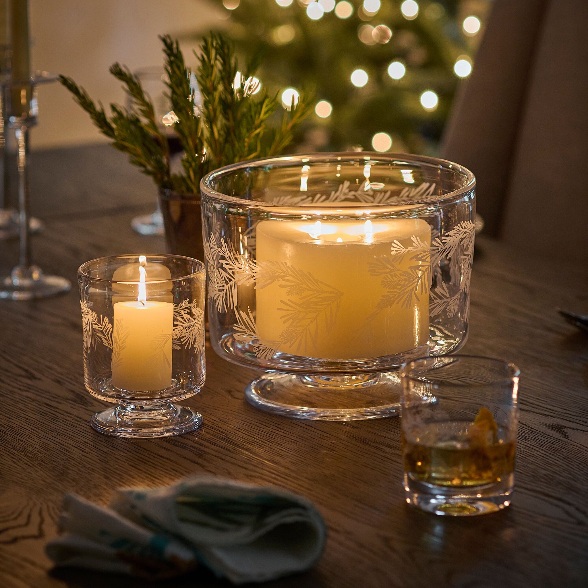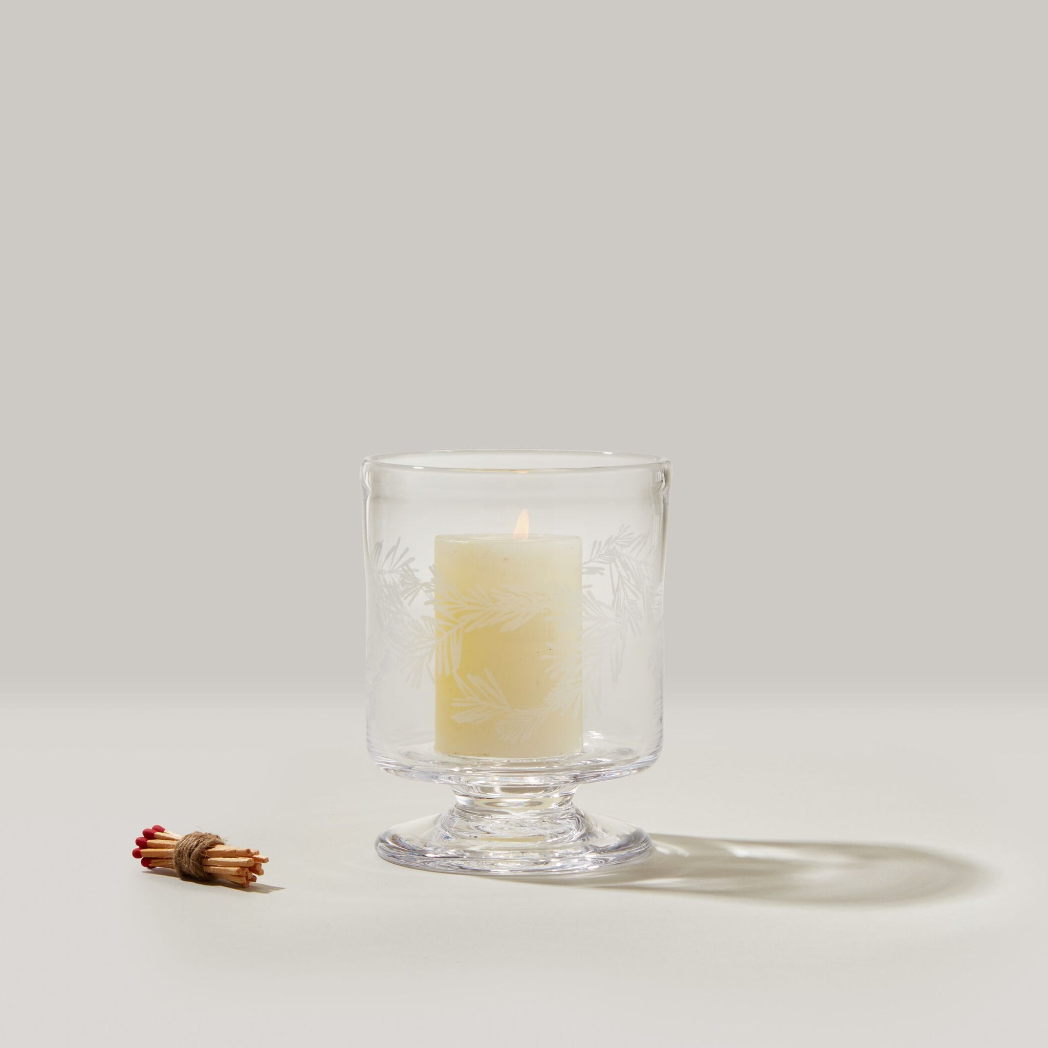 The clean, cylindrical silhouette of our Nantucket Hurricane gets a seasonal update with a delicate pine engraving—bringing a classic winter motif to one of our most loved designs. Inspired by original sketches from our design studio and engraved with fine detail, this piece casts a warm glow that highlights every branch and needle.