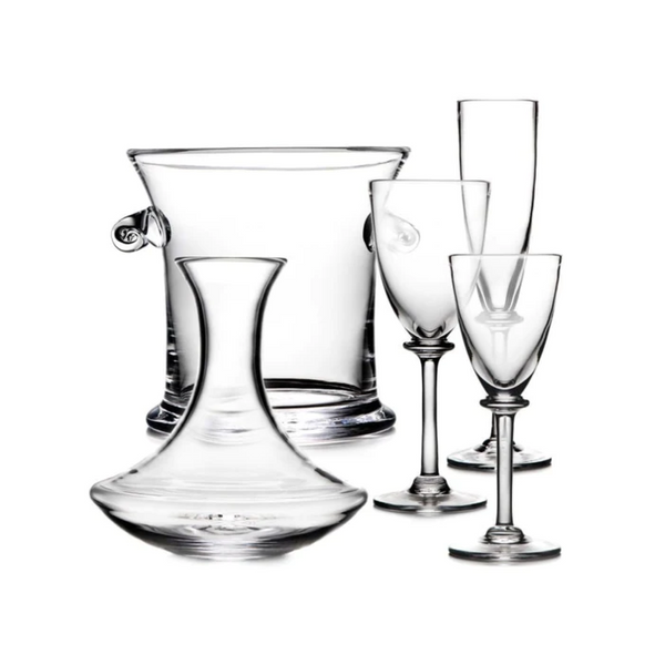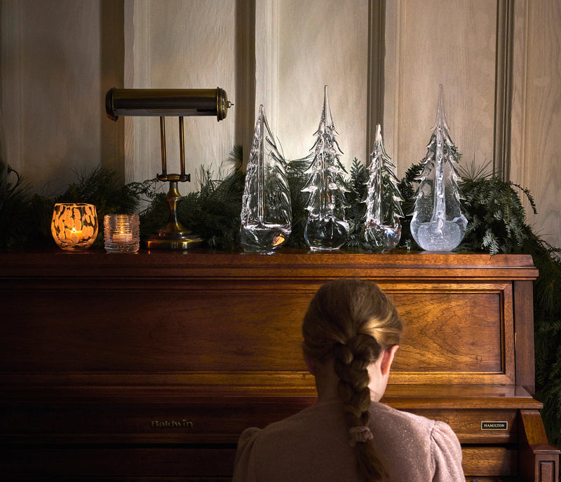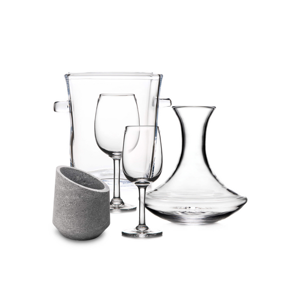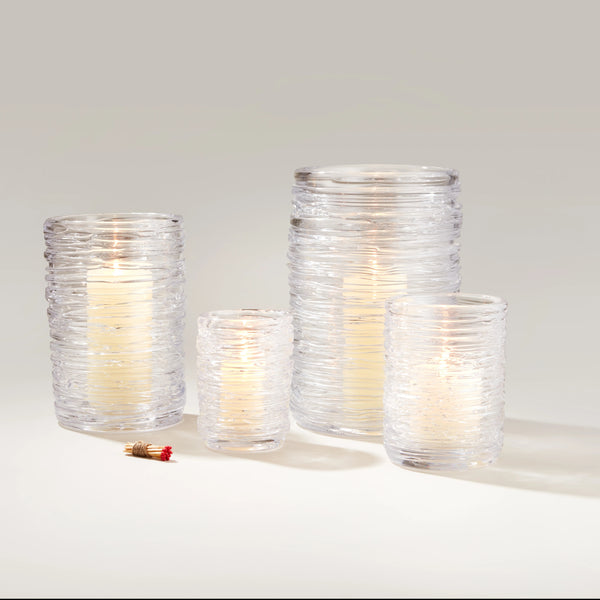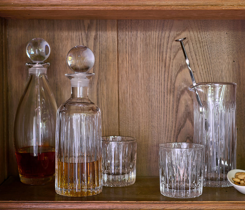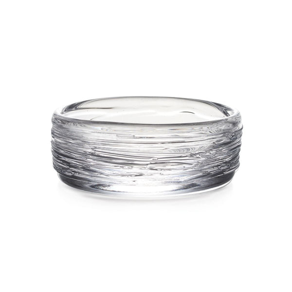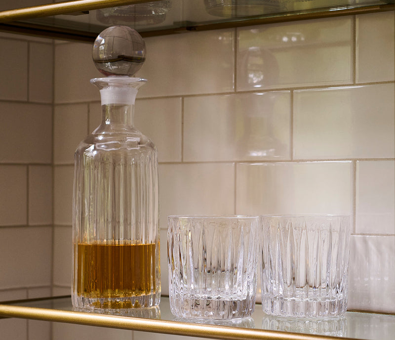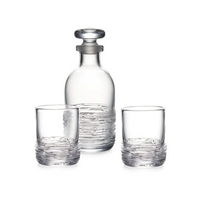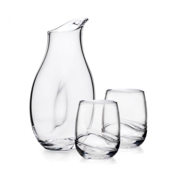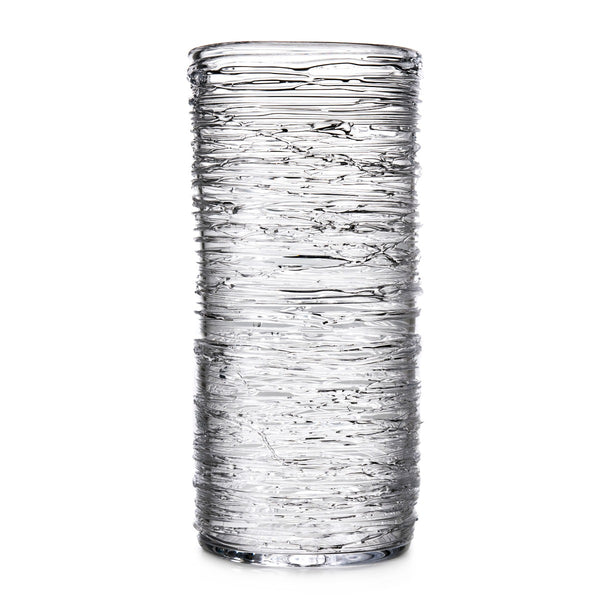 Frozen in winter, flowing in summer – our Echo Lake Collection is inspired by the constantly changing rivers, streams and waterways of Vermont. In a bold interpretation of the craft, master glassblowers nimbly wrap fine strands of glass around the bottom third of cylindrical silhouettes to form the unique, natural texture of this decanter and duo of weighty whiskey glasses. A unique way to uplevel their home bar with textural handmade glass.