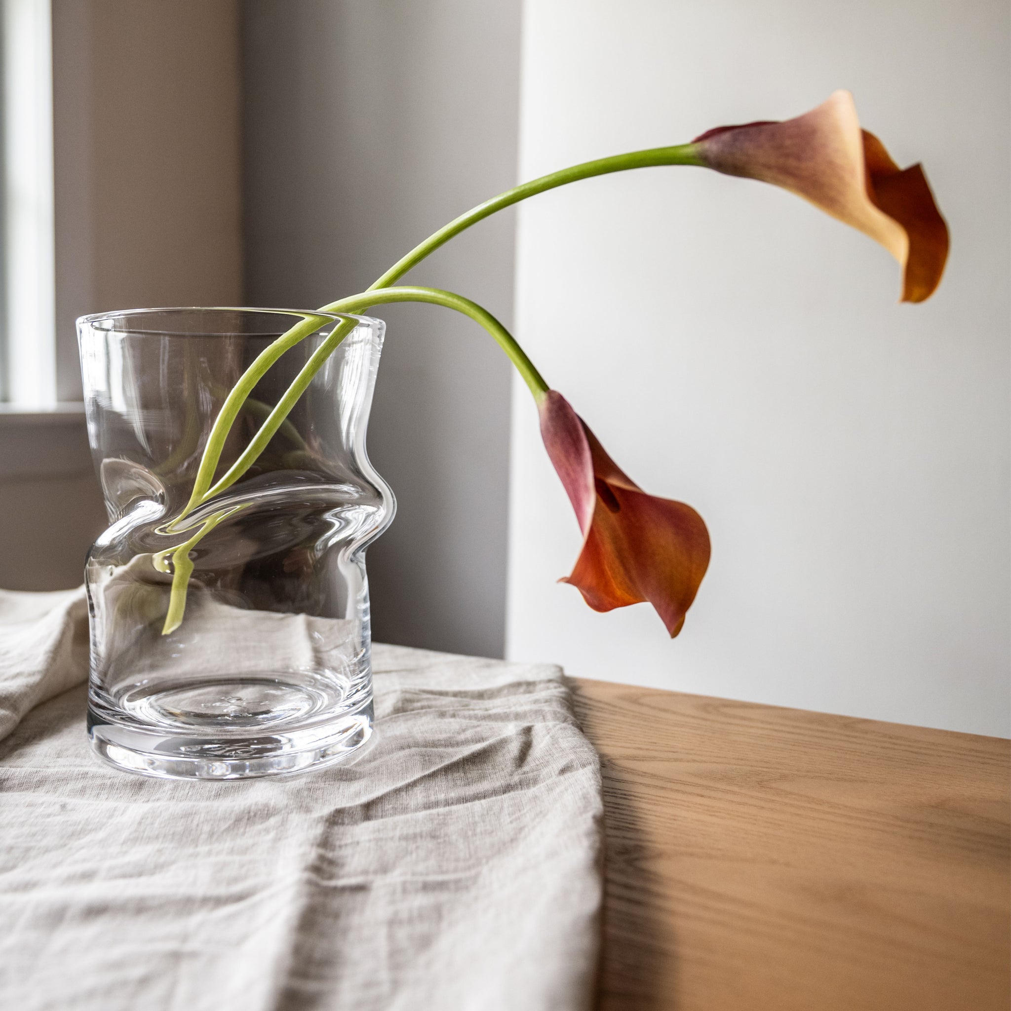 We’ve given a new twist to the balanced proportions of our simple cylindrical Ascutney silhouette. Each piece feels like a moment in the glassblowing process caught in time. The perfect way to show off its uniqueness is in the way the light refracts from within. It also serves as a standout vase.