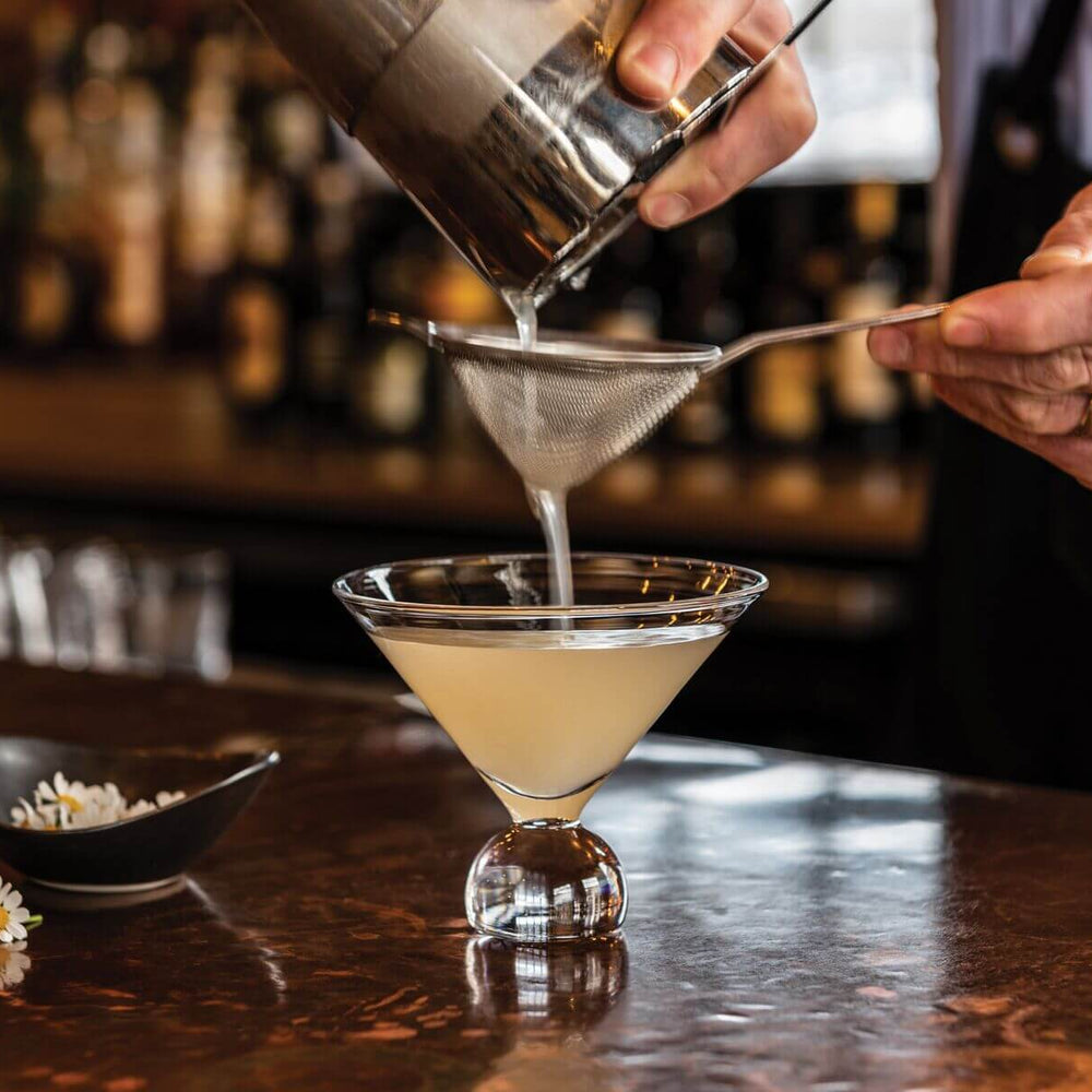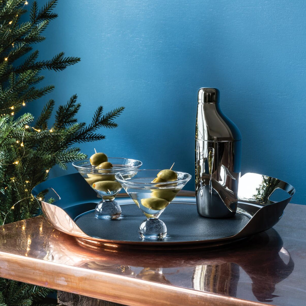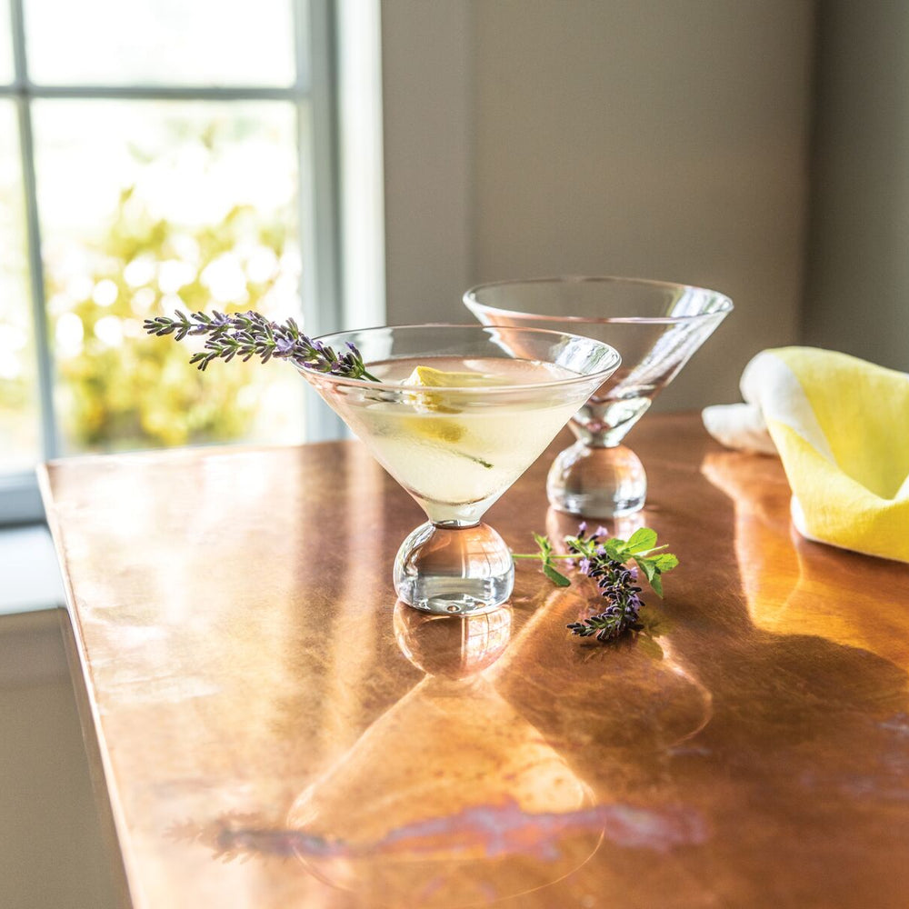 In a nod to Bauhaus architecture and design – and its ethos of clean lines and elemental forms – this perfectly proportioned stemless martini glass is styled with a conical bowl atop a spherical base. A geometric take on a classic that feels great in the hand.