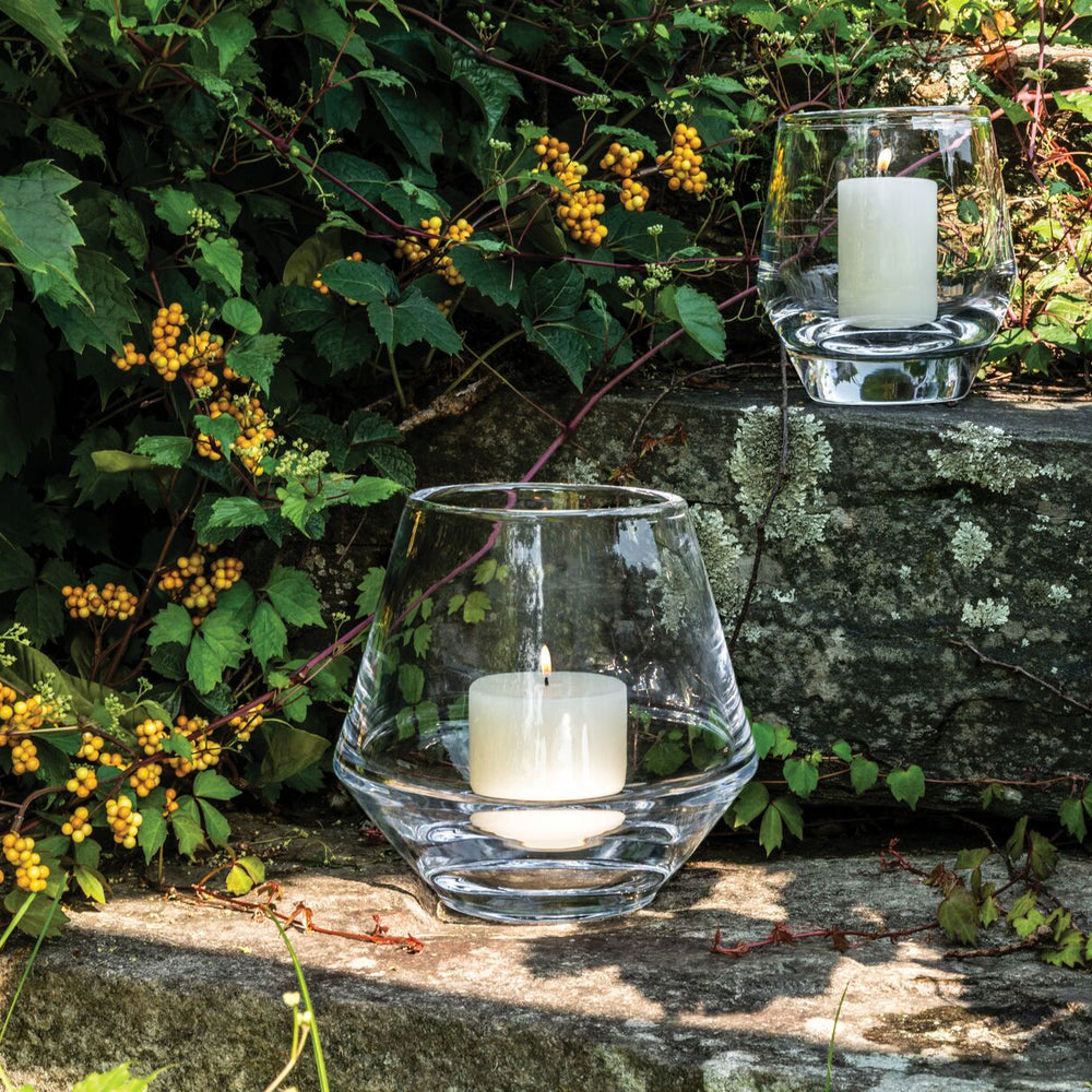 We purchased two of the Bristol Hurricanes after visiting the Quechee, VT location. We thoroughly enjoyed watching the glass blowers working their magic downstairs before shopping in the beautiful store upstairs. The sales clerk we worked with was great and had several gift suggestions for an upcoming wedding. After purchasing this as a gift, we had another one shipped for ourselves. It looks beautiful alone and we plan to add a candle ring around it for the holidays. It's a very versatile piece and was well received as a gift also.