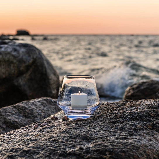 Inspired by the conch shells off the shores of Bristol, Rhode Island, the elegant lines and intuitive angles of this handblown hurricane call to mind the Golden Ratio, at its mysterious intersection of geometry and nature. Quintessentially New England in its graceful strength.