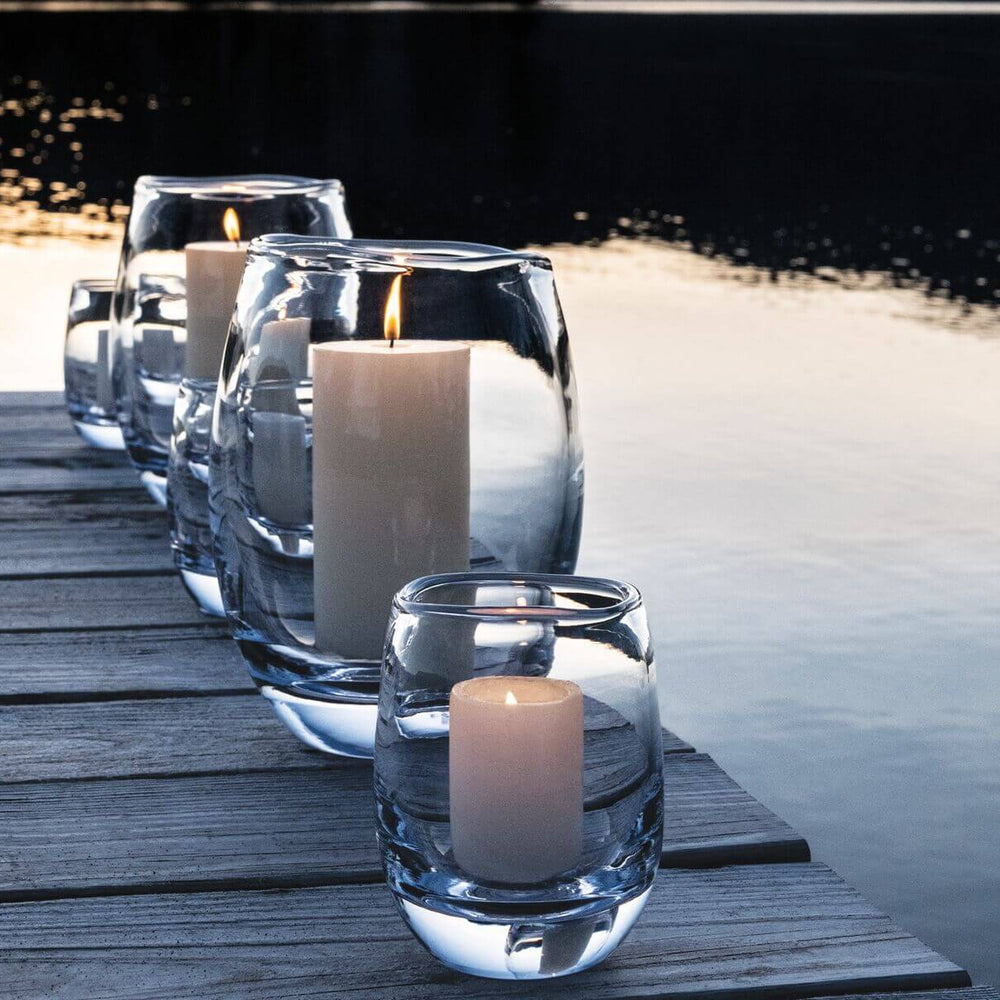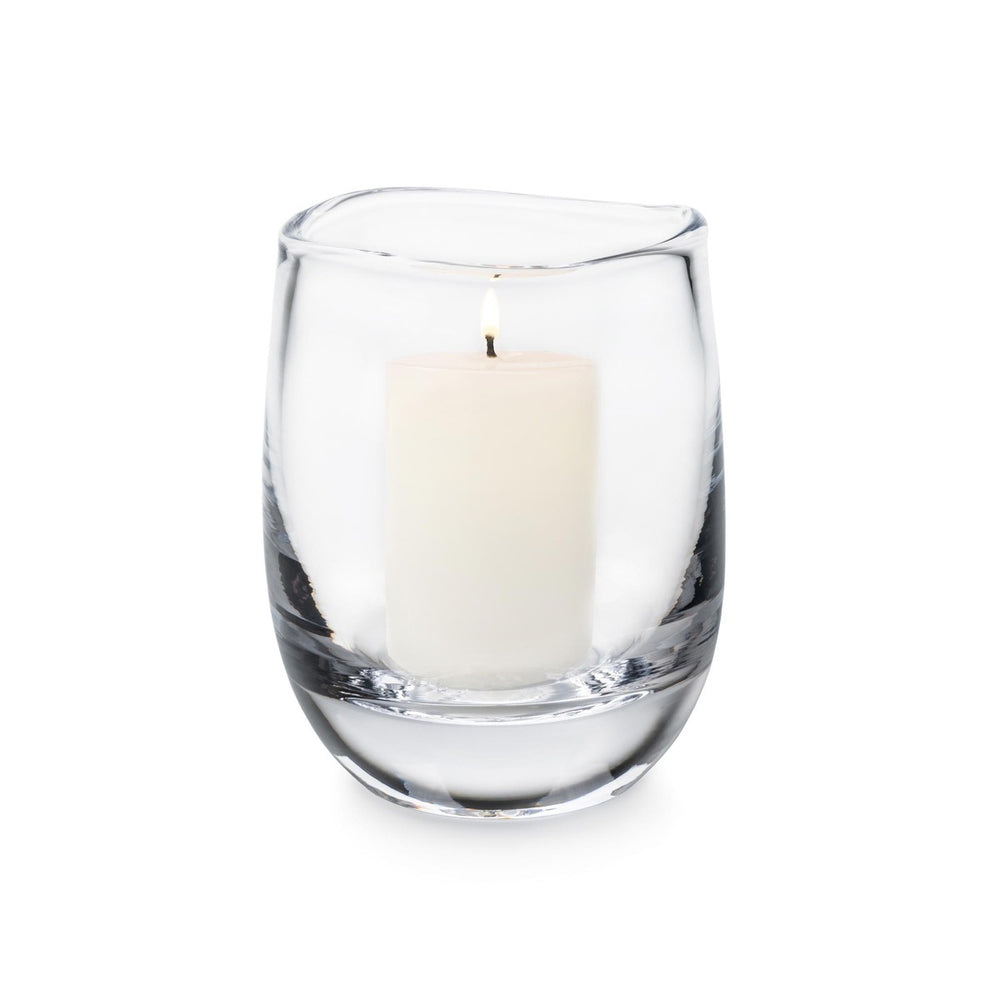 I received two of these as a gift and I love them! They are the large size and look great with a pillar candle inside. The wavy top edge is unique. Lovely for indoor or outdoor gatherings; I would love to get more of them in smaller sizes for larger tables.