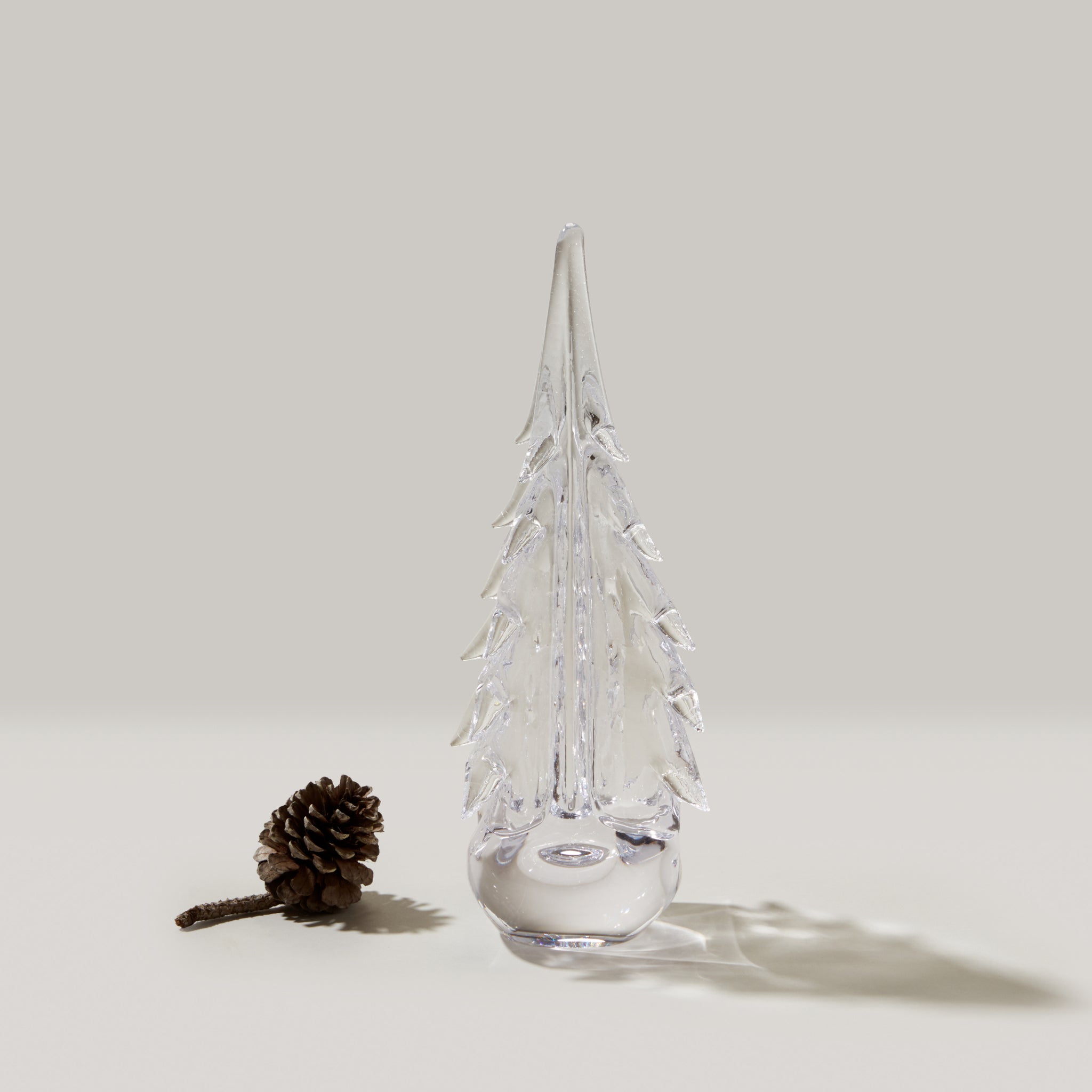 The Four-Sided Crackle Evergreen showcases one of our most intricate techniques: artisans shock molten glass in cool water to create a crackled surface. The result is a prism-like texture that refracts light like frost on winter branches, bringing depth and brilliance to your growing collection.