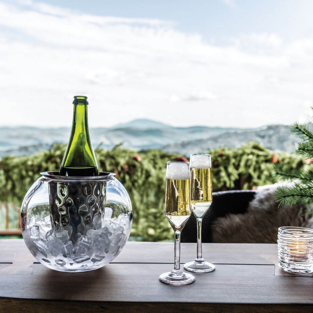 An entirely new take on the ice bucket that’s as visually stunning as it is functional. The custom hammered stainless steel sleeve fits perfectly into our gleaming glass Hampton globe silhouette. Fill the latter with ice, slide in the sleeve, and keep your wine chilled – and dry – using this gorgeous (and genius) mixed-media piece. The deep bowl does double duty as a terrarium or rose bowl. This new classic is already earning its place as a signature piece.