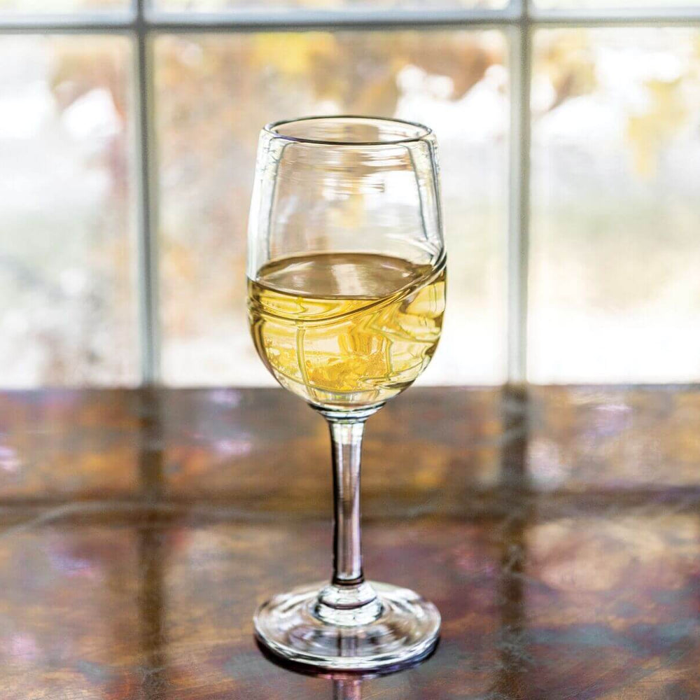 Featuring an optic layered effect that occurs during the glassblowing process, this double-gathered design gives an artistic overlapped effect with the feeling of movement – not unlike the rushing rivers of Glen Falls in its namesake Waterbury, Vermont.